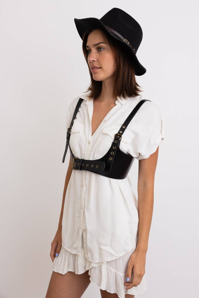 Stylish Black Leather Harness Belt - Edgy Fashion Accessory | Adjustable Body Harness
